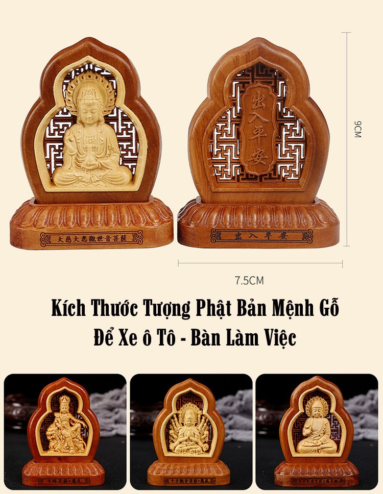 Mẫu Tượng Phật Để Xe Ô Tô Bằng Gỗ Phật Bản Mệnh Hợp Tuổi Mang Lại May Mắn Cho Lái Xe