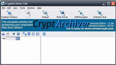 5. CryptArchiver Lite: có cách thức làm việc tương tự như Cryptainer LE, đó là chương trình cũng sẽ tạo ra 1 phân vùng ảo để chứa dữ liệu càn bảo mật và sẽ tự động biến mất khi bạn thoát khỏi chương trình. Và cũng tương tự như trên, chương trình này cho phép bạn mã hóa dữ liệu để gửi chúng qua email.