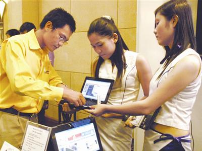 VinaPhone trình diễn công nghệ 3G ngày khai trương. Ảnh: Phạm Yên